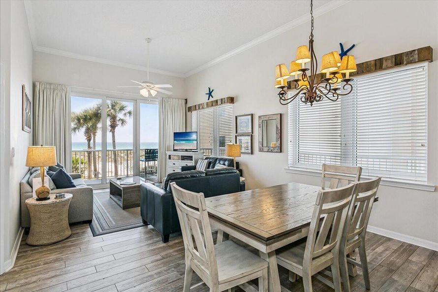 First-floor furnished Gulf-front corner unit offering the perfect blend of comfort, style, and coastal living. This spacious 3-bedroom, 3-bath condominium features impressive 12-foot ceilings, newly painted and new porcelain tile flooring throughout. The desirable corner location provides abundant...