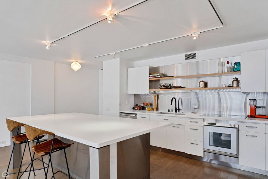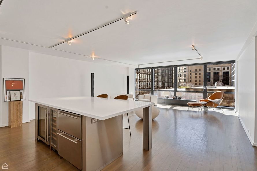 MAGNIFICENT RENOVATION DOWN TO THE STUDS WITH MIES INFLUENCE INTACT. ALL STAINLESS STEEL KITCHEN WITH HIGH END APPLIANCES: MIELE, GAGGENAU, SUB ZERO, CORIAN COUNTERS, WINE COOLER. REAL HARDWOOD FLOORS THROUGHOUT. MARBLE BATH WITH BAIN ULTRA SPA TUB, KOEHLER TOILET, GROHE FIXTURES. LARGE LINEN...