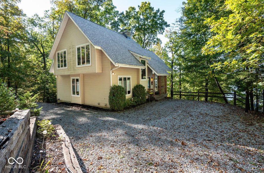 This stunning rustic-contemporary retreat sits on a private .56-acre setting with sweeping views of Lake Monroe, nestled on two lots within the Hoosier National Forest and located in the lake's idle zone. A deeded boat slip is included-perfect for effortless lake living. The home offers three...