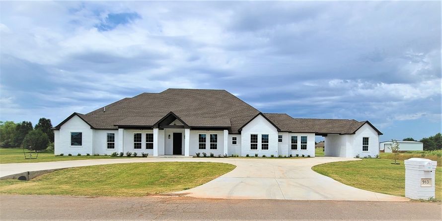 Situated in a 3/4 Acre (mol) lot in the quiet part of mustang very close to Hwy 152 and all amenities. This 5 bed, 3.5 bath, 4 car garage 2ith 2 dining areas, this home has all the perfect touches! Breathtaking entry with covered car parking and circular drive, large open living area with 12ft...