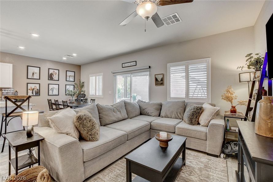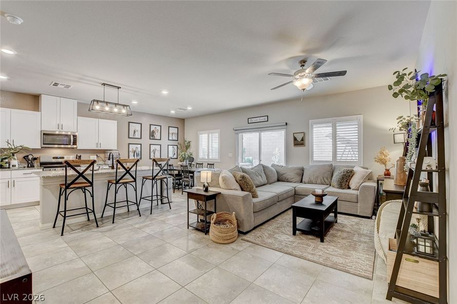 IMMACULATE & STUNNING 4 BEDROOM, 3 BATH HOME IN HIGHLY DESIRABLE SOUTHWEST LAS VEGAS! FEATURES OPEN GREAT ROOM FLOORPLAN, GORGEOUS ISLAND KITCHEN AND BREAKFAST BAR, STAINLESS APPLIANCES, PLANTATION SHUTTERS, UPGRADED FIXTURES, LUXURIOUS PRIMARY SUITE. LARGE SECONDARY BEDROOMS, 2 WITH WALK IN...