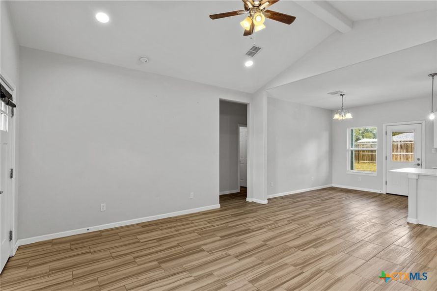Welcome home to this adorable 3 bedroom, 2 bathroom beauty built in 2021 and perfectly situated on a large, private fenced lot. This thoughtfully designed home features tile flooring throughout, vaulted ceilings, and an open, airy layout filled with natural light. The kitchen is a showstopper...