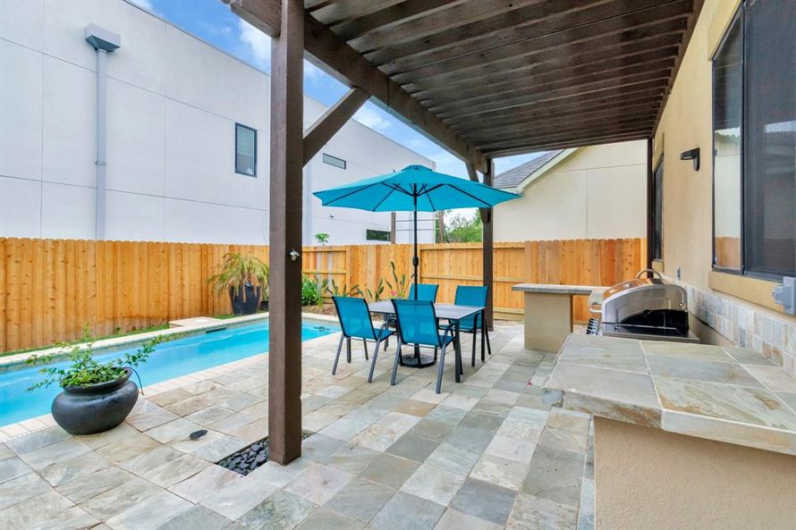 Welcome home in the heart of Houston! Enter & find an impressive entry - high ceilings, modern staircase & open floorplan perfect for entertaining. Living room features fireplace & floor to ceiling windows overlooking the backyard. Formal dining connected to kitchen & living. Kitchen is spacious...