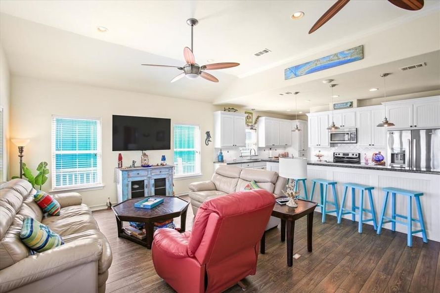 Discover 942 Palm Ridge Dr - Your Coastal Getaway! This 3-bed, 2-bath home is in the A zone, offering affordable flood insurance for your peace of mind. Enjoy stunning sunrises from the East-facing deck and sunset views of the Gulf from the West-facing deck. Sleeps 10 + bonus area for 2 more....