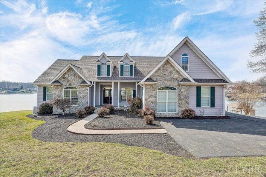 Waterfront home on Smith Mountain Lake: Sunset and Wide water lake views.Be the ultimate host when entertaining in the new gourmet Kitchen with quartz counters,tile backsplash, farm sink, gas stove with decorative hood and subzero refrigerator/freezer. Gentle walk to double dock.