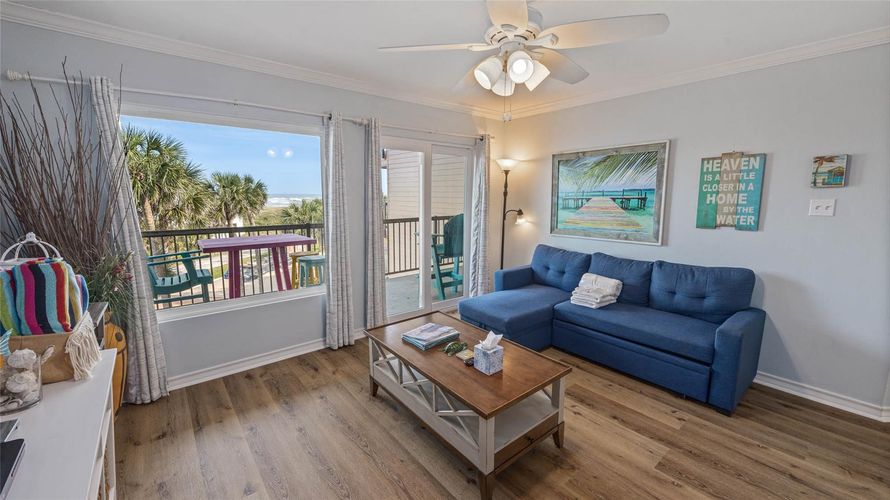 This colorful beach condo will be the perfect place to use for you and your family, or use as a short term rental. New, easy care, LVP flooring just installed! Beautiful views of the ocean and palms off the den and primary bedroom. Enjoy those views from your large balcony as you enjoy a meal or...