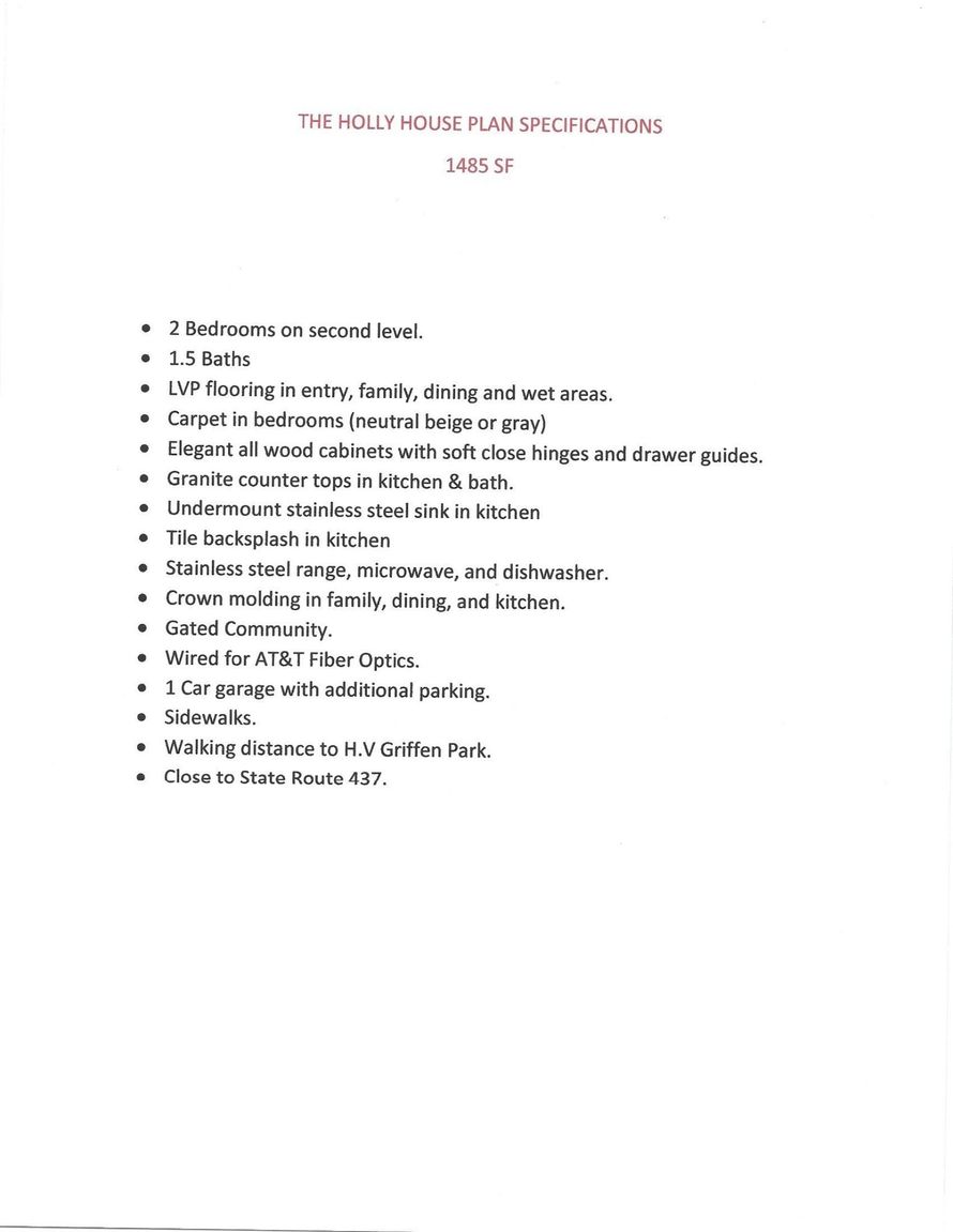 New Construction. Be a part of this beautiful, gated community that backs up to H.V. Griffen Park and The Recreation Center. The Holly is a stunning 2BR, 1.5 Bath, LVP in entry, family & wet areas, carpet in BR's, elegant all wood cabinets w/soft close hinges, granite counters, tile backsplash &...