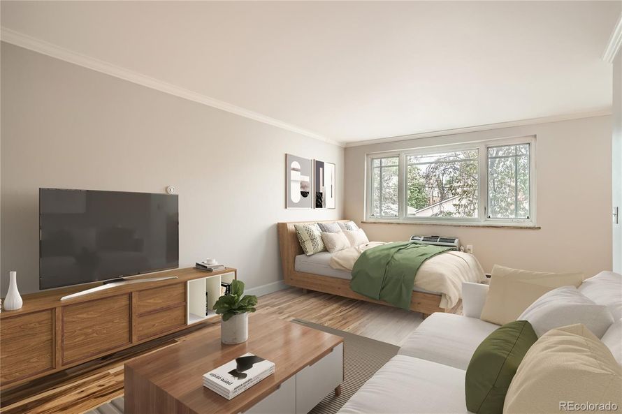 Discover modern living in this beautifully updated studio located in the heart of West Wash Park! This bright and airy unit features contemporary finishes and an open floor plan that maximizes space and functionality. Fresh NEW paint. NEW range, NEW dishwasher and microwave in kitchen compliment...