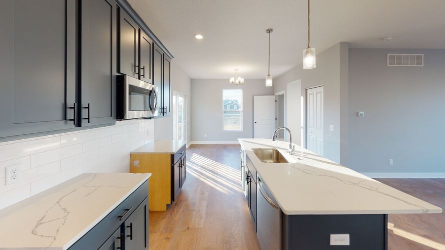 Proposed New Construction. The Remington opens to an impressive great room and eat-in-kitchen with a beautiful view from the sliding glass doors to your back patio. For most, the kitchen is the heart and soul of the home, perfect for get togethers, making this large kitchen the perfect spot for...